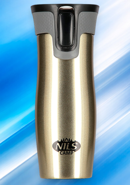 Cană termică NILS CAMP NCC03 GOLD din oțel inoxidabil cu pereți dubli: păstrează cald până la 12 ore și rece până la 24...