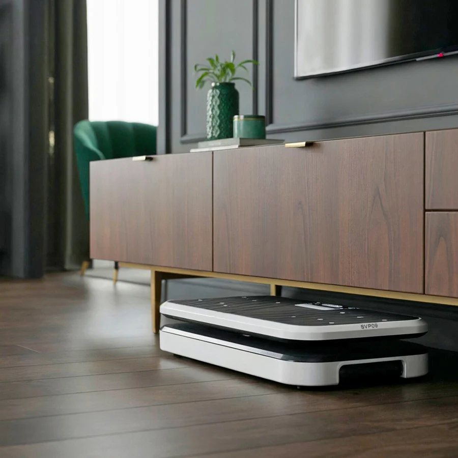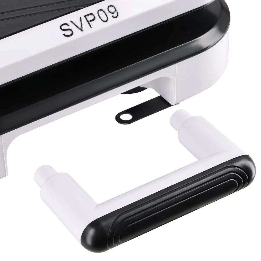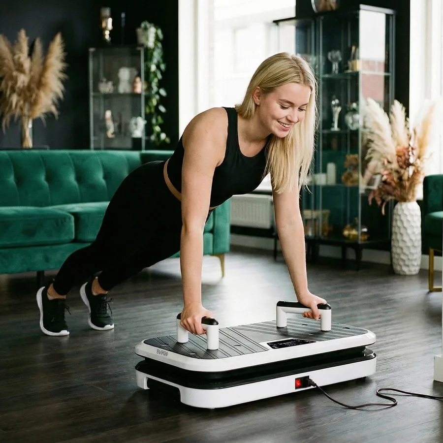 SVP09 de la brendul HMS. Platformă vibrațională pentru antrenamente acasă, recuperare, încălzire și exerciții pentru diferite grupe musculare. Modelul funcționează pe axa verticală «up-and-down», generând vibrații intense care implică musculatura de stabilizare și ajută la diversificarea efortului zilnic. Platforma este potrivită atât pentru începători, cât și pentru utilizatori cu experiență mai mare.