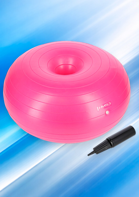 Фитбол для упражнений YD04 от HMS. Балансировочный мяч типа «Donut» для тренировок и упражнений на стабилизацию. По описанию производителя, занятия с таким мячом подходят людям с малоподвижным образом жизни или тем, кто испытывает повышенную нагрузку на позвоночник на работе.