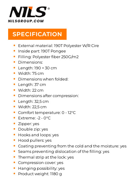 • Мешок упакован в практичный и удобный чехол с дополнительными компрессионными лентами;