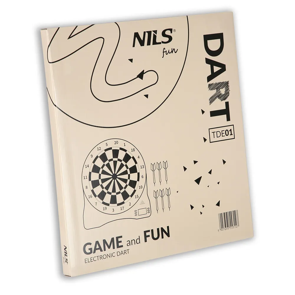 TDE01 ELECTRONIC DARTS de la NILS FUN. Este un echipament pentru jocul de darts care combină formatul clasic al aruncărilor cu evidența electronică a scorului. Modelul înregistrează punctele în timp real, eliminând calculul manual și permițând concentrarea asupra jocului. Producătorul indică suport pentru până la 8 jucători simultan și 32 de moduri de joc integrate.