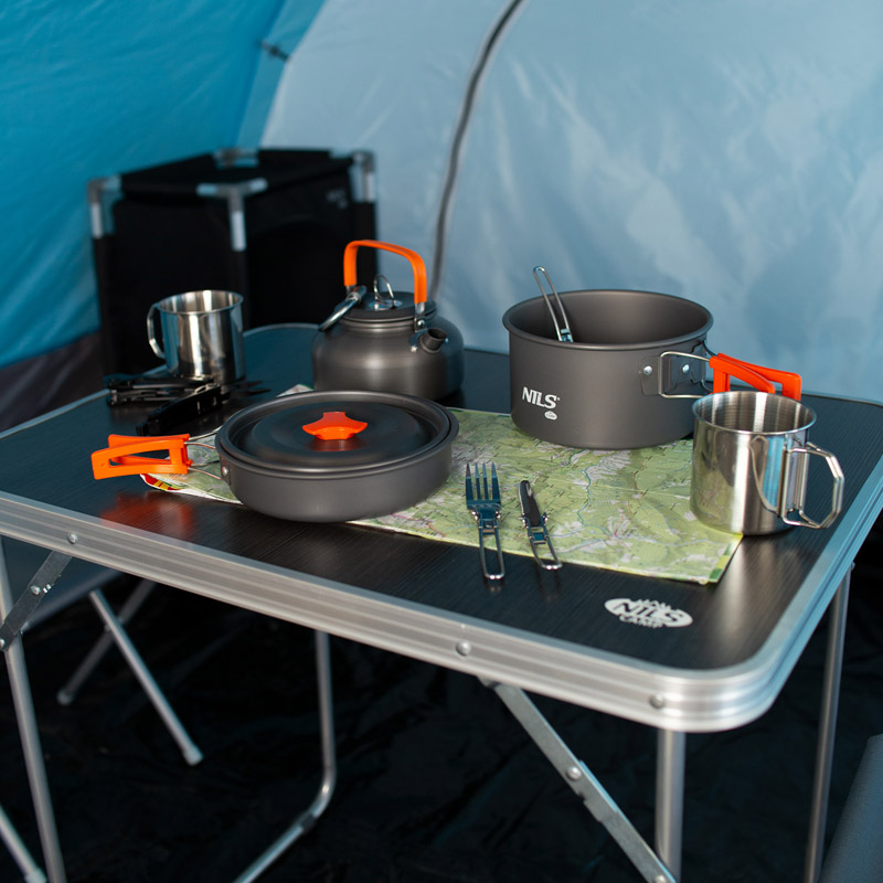 Посуда для походов идеально подойдет тем, кто путешествует по горным или байдарочным тропам, проводит время в кемпинге или под палаткой. Набор включает: кастрюлю, сковороду, чайник и столовые приборы. Позволяет быстро и вкусно приготовить еду на костре или походной плите. Посуда изготовлена из прочного, устойчивого к повреждениям алюминия с антипригарным покрытием, к которому не прилипает пища. Весь комплект очень прочный и лёгкий. Независимо от того, готовите ли вы ужин на горных вершинах или завтрак в лесу, с этим набором посуды каждый поход или вылазка на природу превратятся в настоящий праздник.