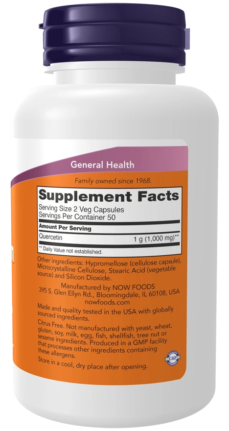 Кверцетин — это природный нейтрализатор свободных радикалов, который способствует поддержанию здоровой сезонной функции иммунной системы. Лабораторные исследования показали, что кверцетин также помогает поддерживать нормальную функцию дыхательной системы. Без молока, яиц, глютена, орехов и сои; без ГМО; подходит для веганов и вегетарианцев.