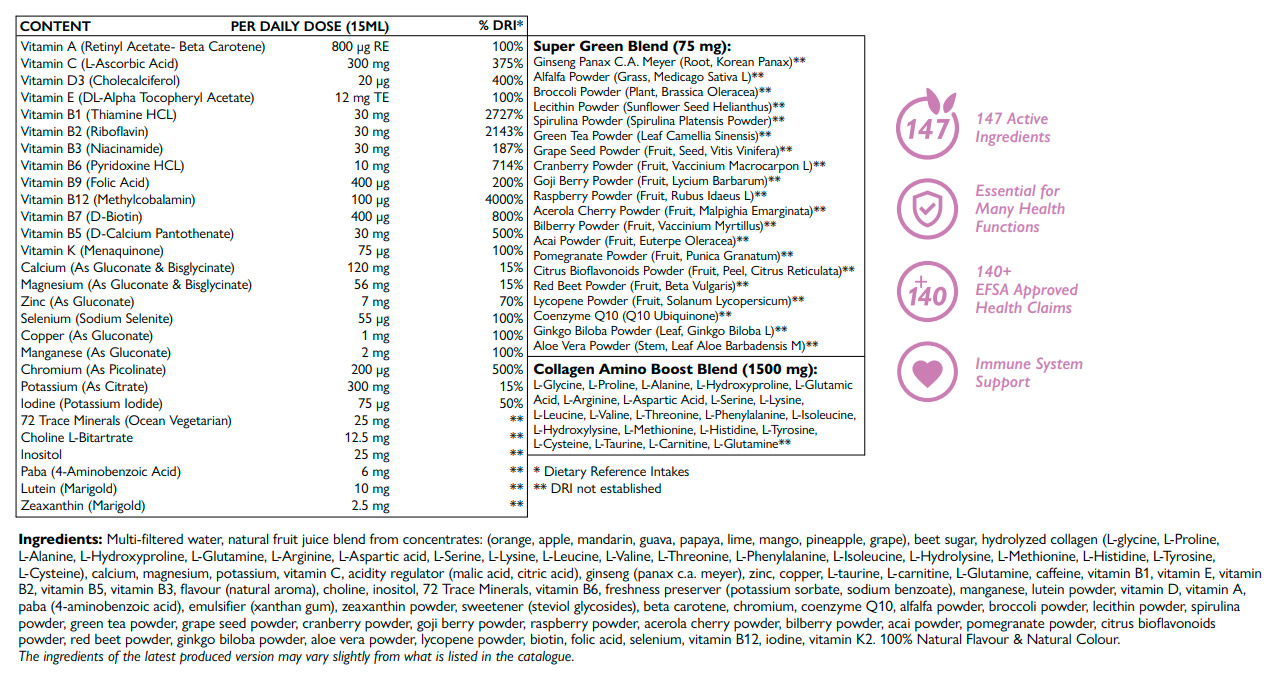- 147 активных ингредиентов, необходимых для многих функций здоровья;